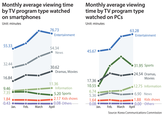 "People watching a lot of news on smartphones reflects the increased desire for information," the KCC wrote. "On the other hand, people watched more sports and entertainment programs with their PCs.”