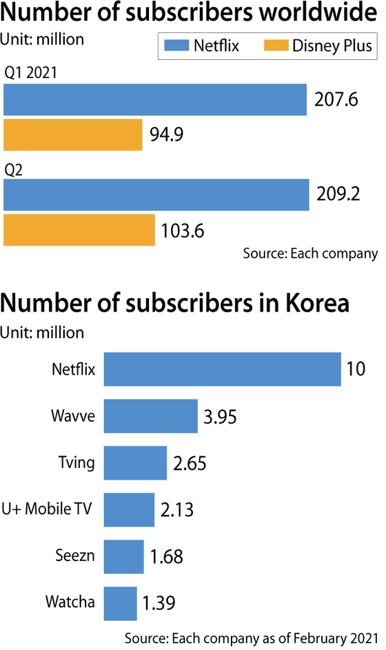 "People overly flocked to Netflix when it first came to Korea, because back then, local OTT services weren't as competitive as they are now," said pop culture critic Jeong Deok-hyun. "Local OTTs are growing, and Disney Plus could increase the size of the pie as a whole for the market. If Disney Plus manages to produce something for older audiences as well, then it's possible that Netflix users will move along to a new platform."