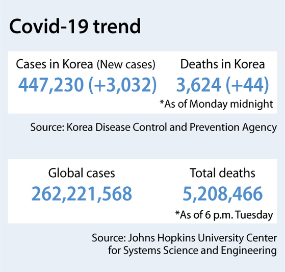 The country reported 3,032 new Covid-19 cases, the highest figure ever reported on a Tuesday, raising the total caseload to 447,230.