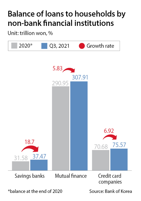 According to data from the Korea Research Institute for Financial Inclusion, this group of lenders has been tightening lending for a few years. While 12.6 percent of loan requests were approved by them in 2018, that rate fell to 11.8 percent in 2019 and 10.8 percent in 2020.