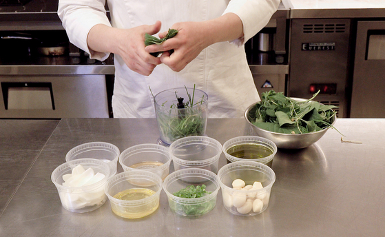 Today, the Korea JoongAng Daily will introduce a bibim guksu variety made with spring vegetables and gochujang. The olive oil and gochujang sauce will give your dish a mild kick of spiciness while still enhancing the taste of the spring vegetables. This version will be made using raw hanwoo (Korean beef).