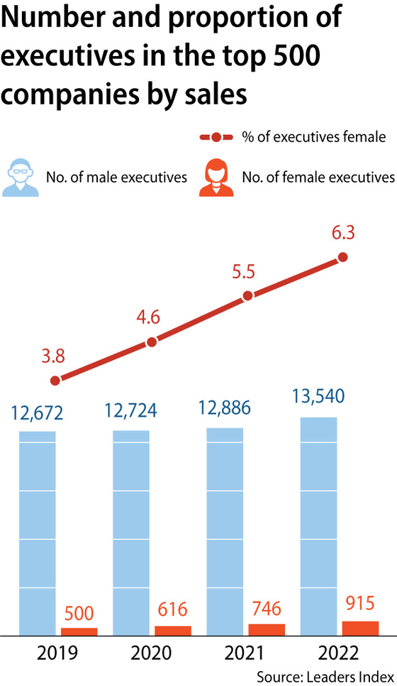 In the first quarter, women executives accounted for 6.3 percent out of 14,612 executives in Korea, according to the research agency Leaders Index.