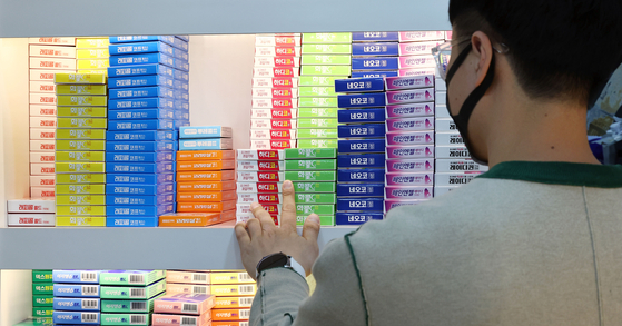A pharmacist organizes stacks of cold medicine at a pharmacy in Jongno District, central Seoul, on Tuesday. Korean Pharmaceutical Association sent out a notice to drugstores in 16 cities nationwide “to sell proper amount of cold medicine to customers required for respiratory diseases” in case the supplies becomes scarce. [YONHAP]