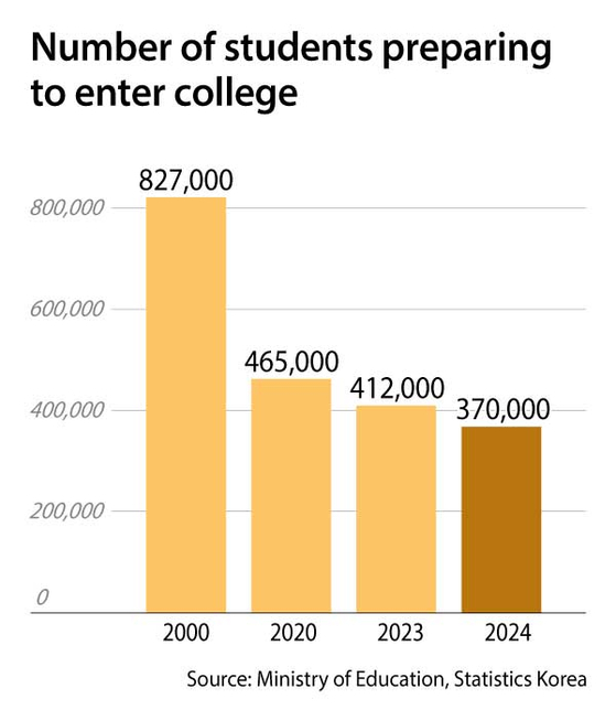 A four-year private university in North Jeolla faces a similar crisis. While the school had space for around 700 freshmen this year, admissions were so low that it had to offer 570 spots during additional college admissions.