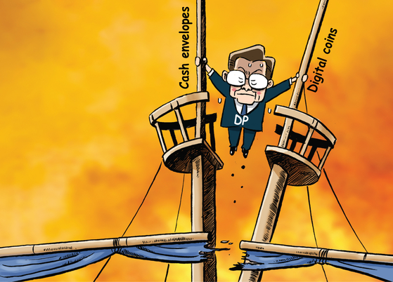 The Democratic Party (DP) faces a dual crisis from the suspicion that former chairman Song Young-gil had handed out cash envelopes to party members before the 2021 national convention to elect himself as the new leader, coupled with the suspicious investment in cryptocurrency by Rep. Kim Nam-kook. [PARK YONG-SEOK]