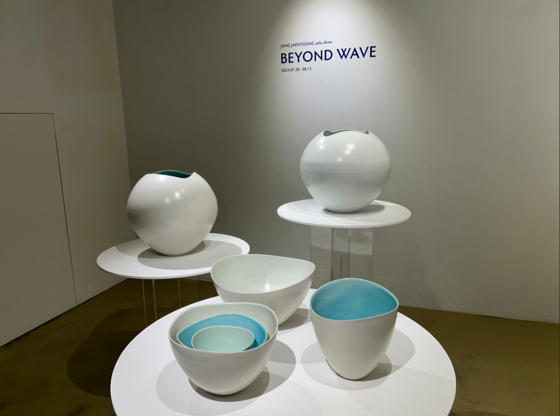 Ceramic artist Jang Jae-nyoung's solo exhibition, “Beyond Wave,” is taking place at Soluna Gallery in Jongno District, central Seoul, until Aug. 13. Jang specializes in white porcelains including vases, cups, plates and bowls. On display are 140 different ceramics from his “Wave” series, which comes in an assortment of different blue hues, and his latest “Wave Line Jar” series, which are white round jars in four different sizes each adorned with golden curves on their surface. Soluna Gallery is open from 11 a.m. to 6 p.m. every day except Mondays. The exhibition is free to all. [SHIN MIN-HEE]