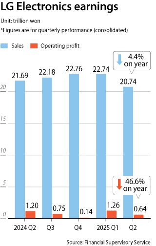 LG Electronics reported weaker-than-expected second-quarter results on Friday as nearly 200 billion won ($145 million) in operating losses in its TV division dragged down overall performance. The company cited sluggish global demand, intensifying price competition with Chinese rivals and U.S. tariffs as key factors behind the downturn.