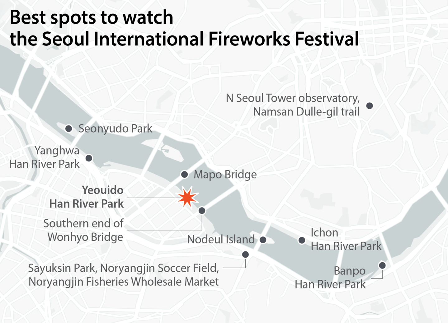 Seoul’s night sky this Saturday will sparkle with bursts of color as the Seoul International Fireworks Festival returns to Yeouido Han River Park in Yeongdeungpo District, western Seoul.