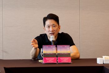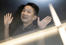 Bora Chung, author of “Cursed Bunny,” left, and the book’s translator Anton Hur, pose with the book during the ceremony for the prestigious 2022 International Booker Prize in London on Thursday. "Cursed Bunny" was shortlisted for the prize in...