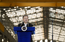 Moon visits Gunsan Shipyard, PPP cries political foul