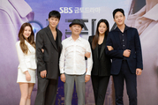 From left, actors Lee Da-in, Joo Won, director Baek Soo-chan, Kim Hee-sun, and Kwak Si-yang pose for a photo at an online press event for the new SBS Friday-Saturday drama series "Alice” on Tuesday. Alice, which begins airing on Aug. 28, is a ...