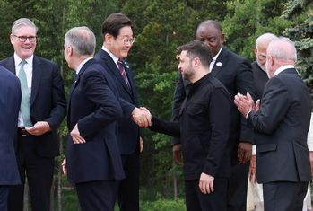 Korean President Lee Jae Myung held bilateral talks with the leaders of India, Britain, Mexico and Brazil on the margins of the Group of 7, or G7, summit in Canada's resort town of Kananaskis Tuesday, signaling Korea's return to global diplomacy.