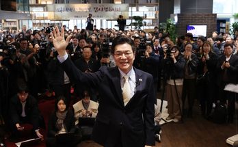 Busan Mayor Park Heong-joon, seeking a third term in the June 3 local elections, shaved his head in front of the National Assembly, calling for the swift passage of a special bill aimed at transforming the southeastern port city into a global hub.