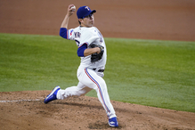 Texas Rangers pitcher Yang Hyeon-jong hurls a pitch to a New York Yankees batter during the third inning of a baseball game in Arlington, Texas, on Wednesday.