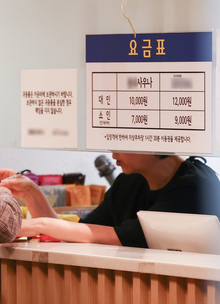 Prices are attached on a counter of a public bathhouse in downtown Seoul on Monday. The consumer price index for bathhouses rose 14.1 percent on year in May to log the highest increase in 14 years and five months, according to Statistics Korea...