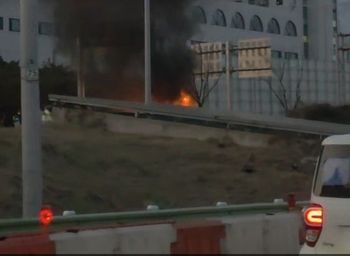 A fire broke out in a passenger vehicle traveling near the southeastern region of the Han River at around 6:24 a.m. on Friday. A body was found in the driver's seat.
