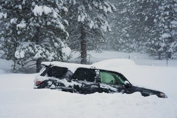 California was walloped Monday by a powerful winter storm carrying treacherous thunderstorms, high winds and heavy snow in mountain areas.
