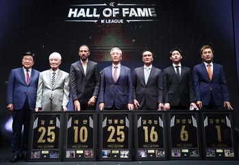 The K League Hall of Fame enshrined six new members in a ceremony Tuesday, a class that includes a late World Cup hero who excelled at multiple positions in the domestic league.
