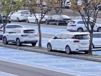 Photos showing cars parked in unusual positions near disabled parking spaces at Seoul Grand Park in Gwacheon, Gyeonggi have sparked public criticism online.