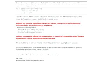 The National Institute for International Education (Niied) announced application guidelines for the 2026 graduate Global Korea Scholarship (GKS), offering a larger quota overall, though with greater emphasis on R&D programs.