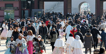 Gyeongbok Palace in Jung District, central Seoul, is crowded on Monday, the last day of the Lunar New Year holiday break that began Friday, amid mild temperatures but high levels of fine dust.