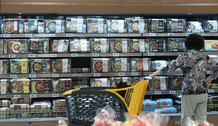 A customer looks at meal kits at a supermarket in Seoul on Thursday. Stricter distancing guidelines have forced people to stay home longer and resulted in an increase of demand for meal kits.