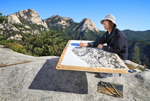Artist Kibong Rhee, well known for his mystic landscape paintings that seem to be veiled with fog, explains his latest works at Kukje Gallery, central Seoul, where his solo show “Where You Stand” started on Thursday. Rhee created the unique...